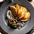 Chargrilled 300g ribeye, served with béarnaise sauce, roasted garlic, and thyme potatoes.