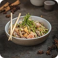 Flaky black cod marinated in sweet miso, served with jasmine rice and wilted greens.